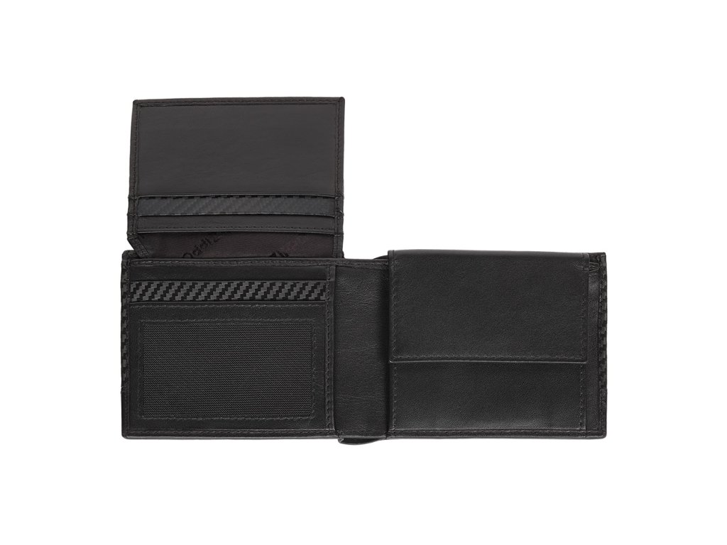Dodejte moderní styl svým každodenním nezbytnostem s peněženkou s karbonovým vzorem a vestavěnou kapsou na mince od značky Zippo. Díky dostatku prostoru na bankovky, platební karty a okénku na doklad nabízí tato peněženka z pravé kůže decentní značku Zippo, technologii blokování RFID a luxusní žakárovou podšívku.