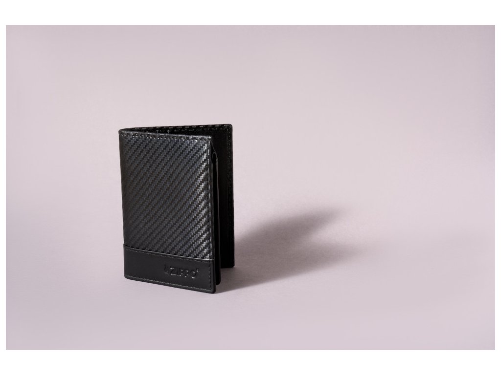Elegantní peněženka s kapsou na mince z pravé kůže s karbonovým vzorem pro každodenní použití.
