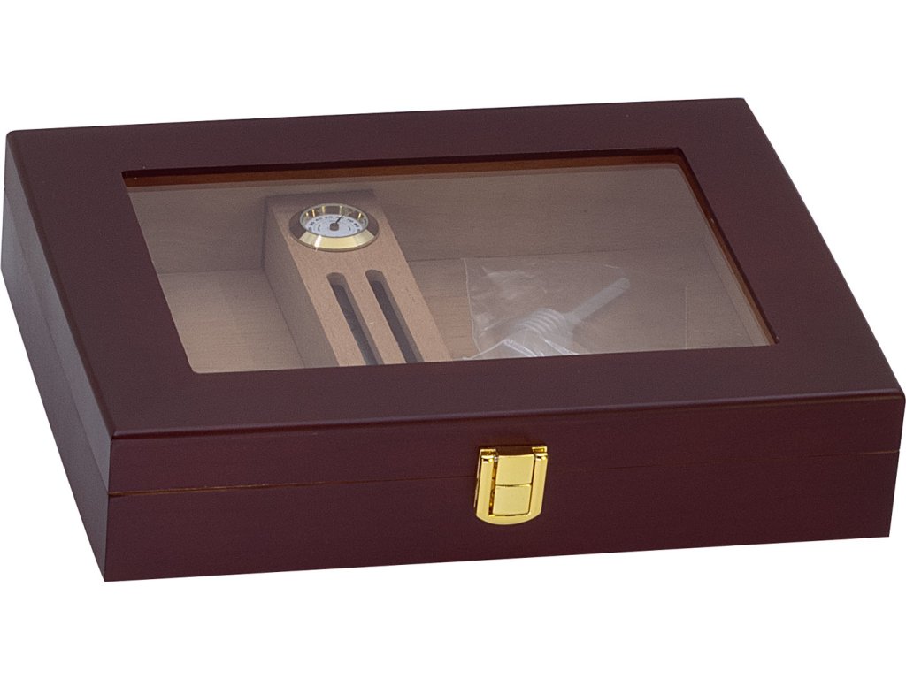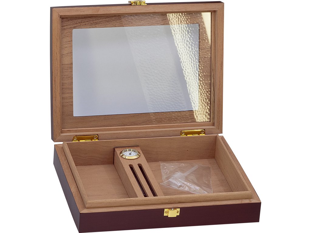 Humidor 98459 je vyroben z cedrového dřeva a součástí balení je zvlhčovač i vlhkoměr.