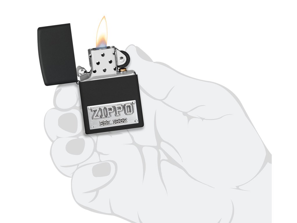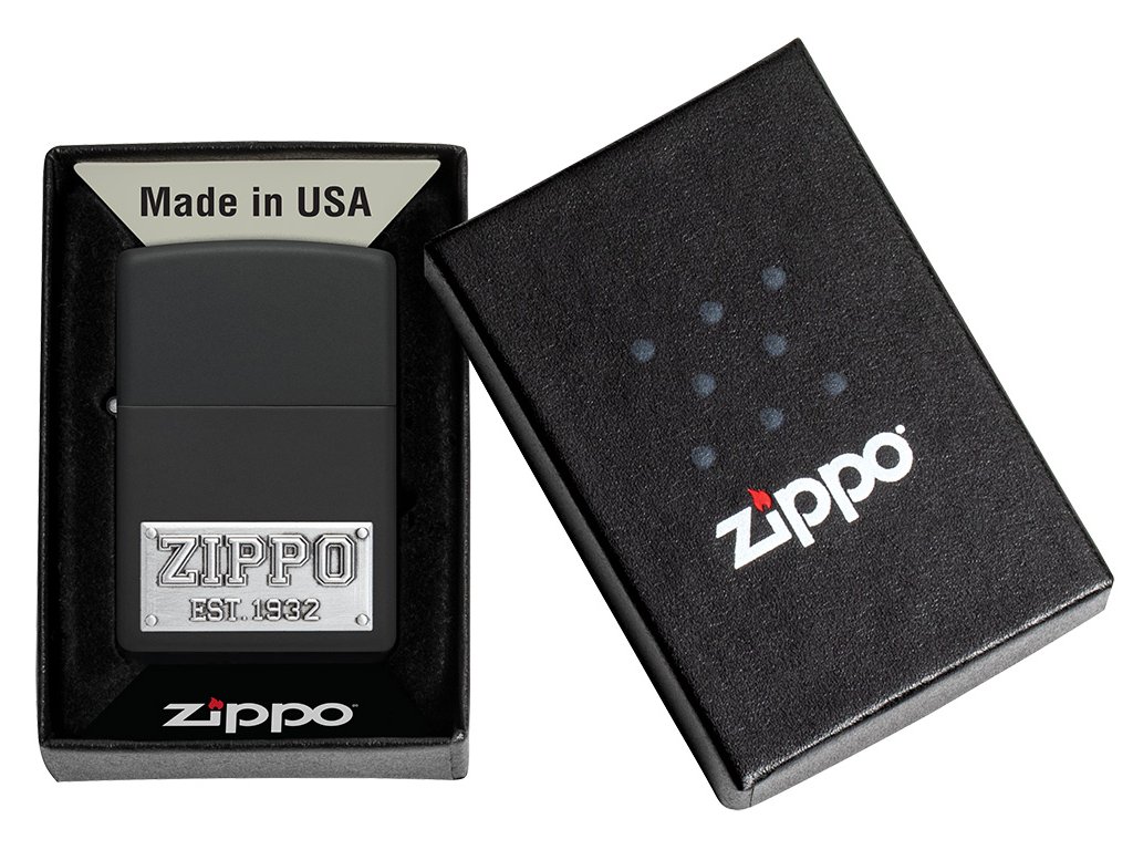 Zapalovač Zippo 26157 Zippo License Plate s povrchem Black Matte.Zapalovač je balen ve standardní dárkové krabičce.