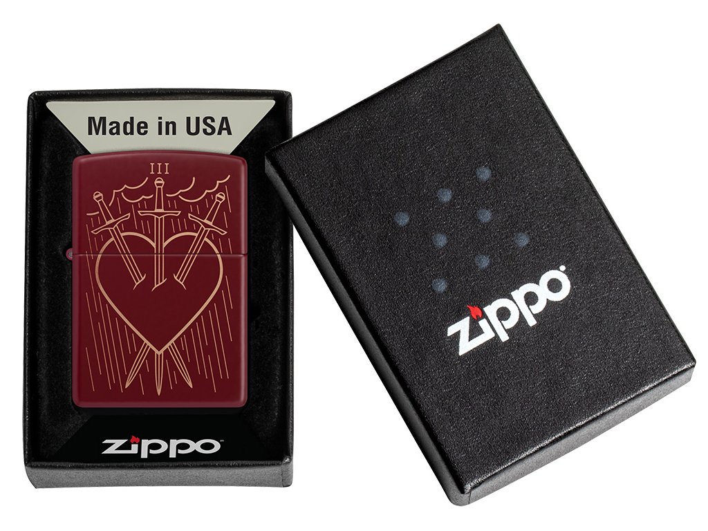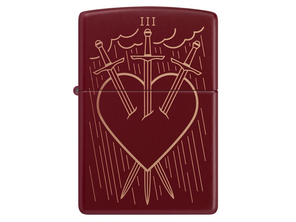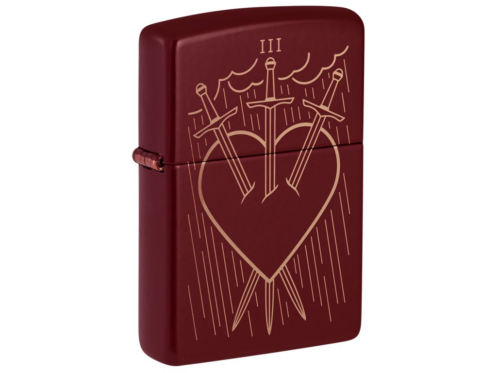 Zapalovač Zippo 66087 Three of Swords Design s povrchem Merlot.