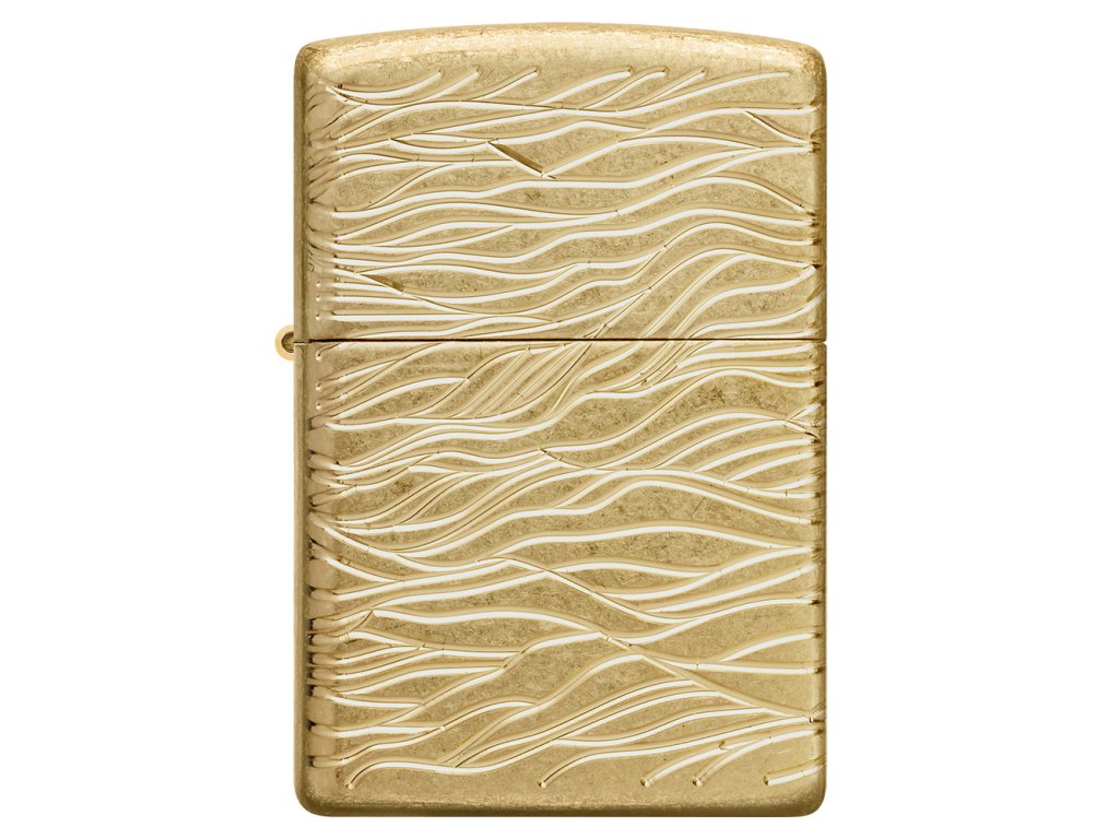 Hluboké, plynulé linie se všelijak klikatí a mísí po všech stranách tohoto úžasného zapalovače Zippo 23074 Luxury Waves Design s povrchem Armor® Tumbled Brass™ v bohatém designu 360° frézování MultiCut.